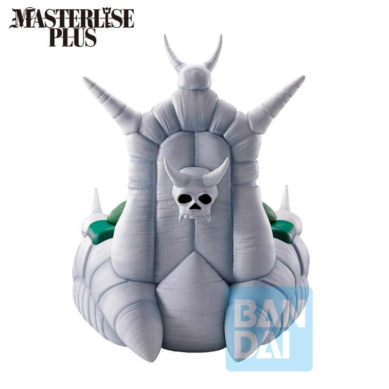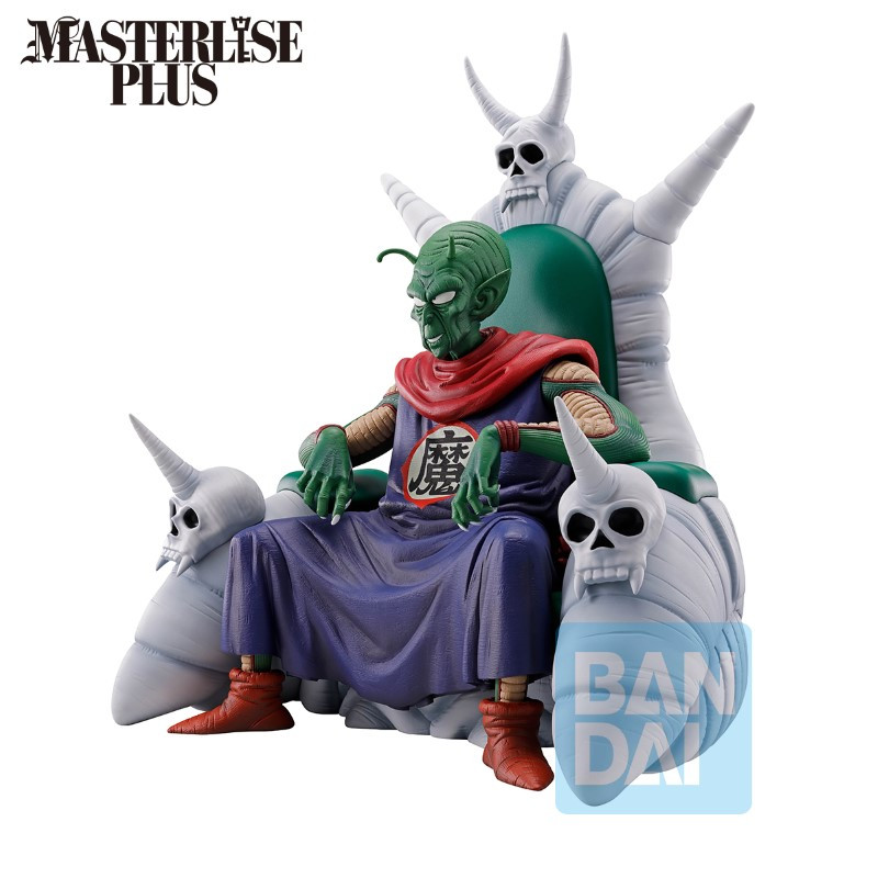 Pose : Piccolo Daimao assis fièrement sur son trône, les coudes sur ses accoudoirs, expression de domination → c’est la posture du roi démon qui vient d’arriver au palais céleste.