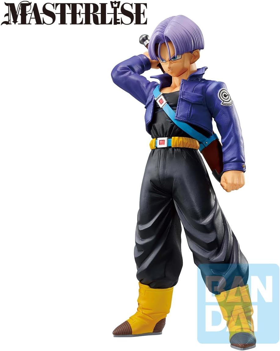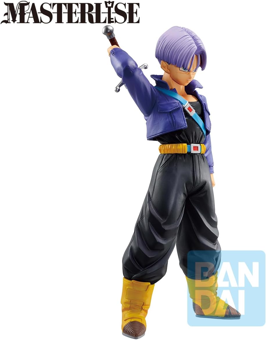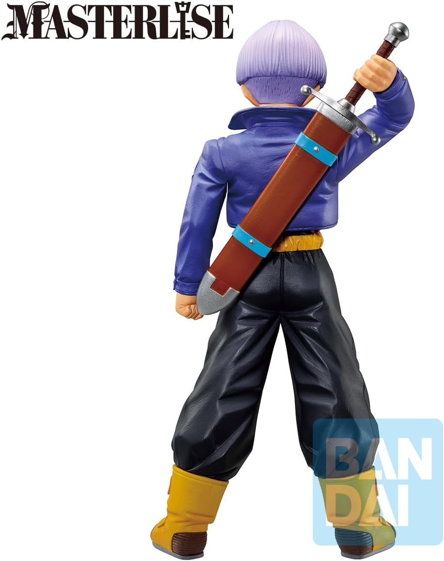 Trunks vient du futur dévasté par les Androïdes, et c’est exactement ce que rappelle cette figurine : tenue de combat, épée dans le dos, regard déterminé.