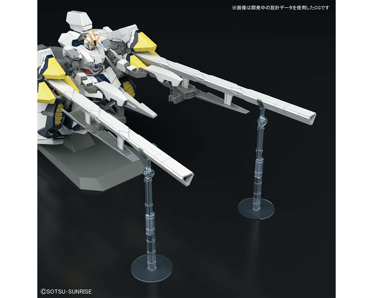 L’accompagné avec d’autres modèles HG(High Grade) de l’Universal Century, notament de Mobile Suit Gundam Narrative ou Mobile Suit Gundam Unicorn.