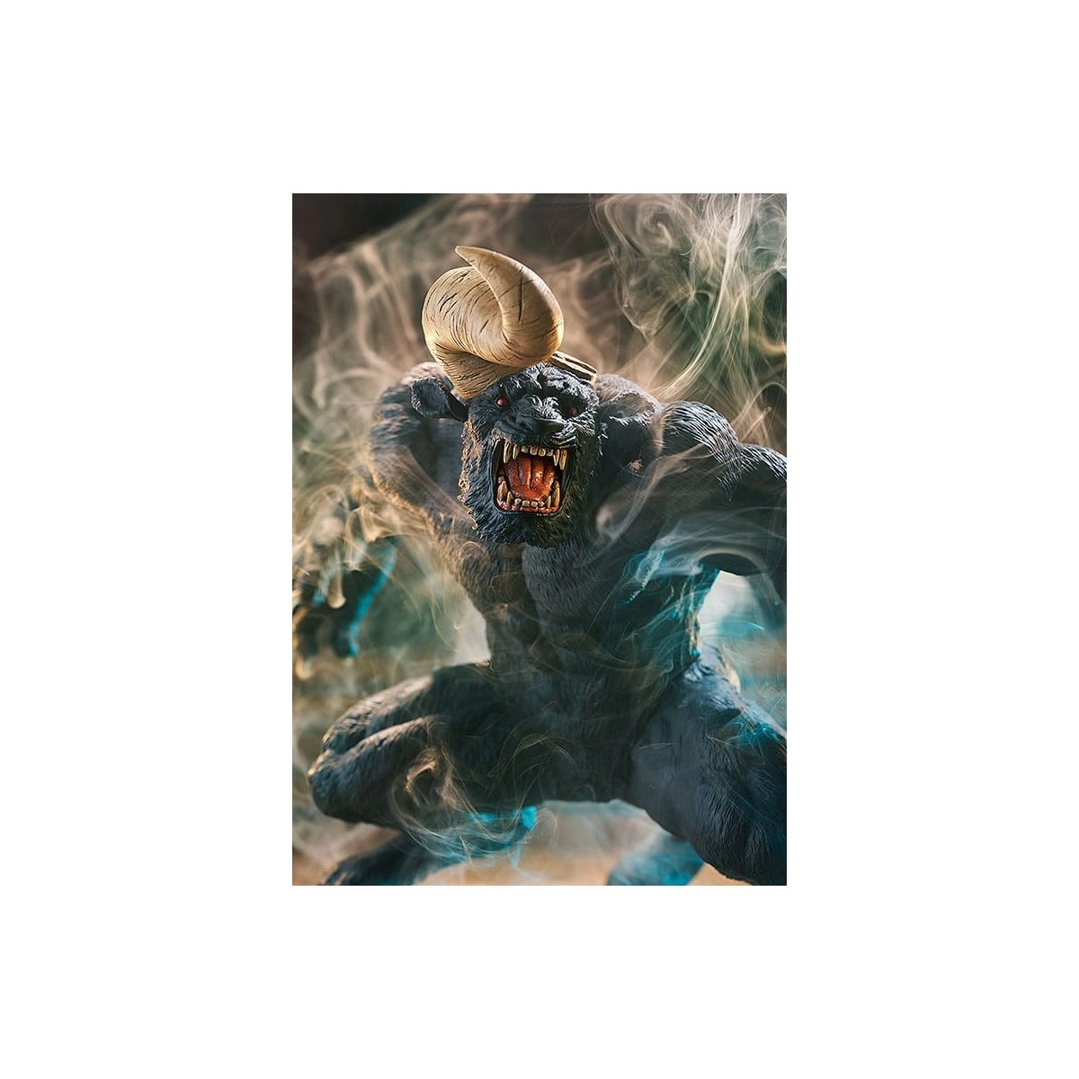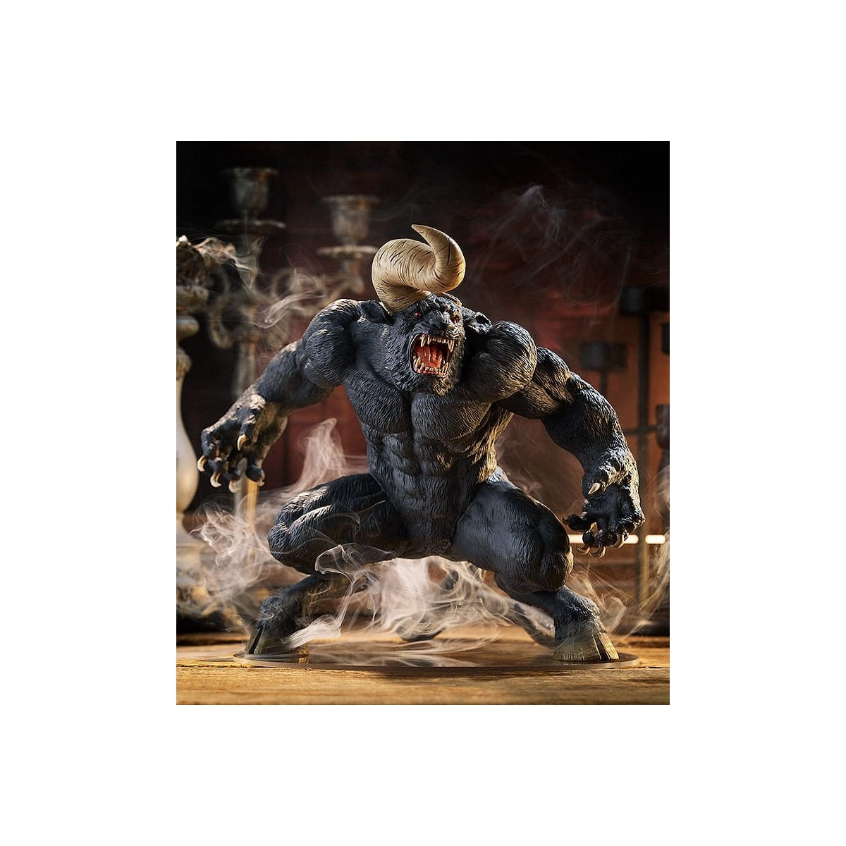Les détails sont soignés : la texture de la fourrure, des cornes, des muscles, des accessoires sont travaillés pour restituer l’aspect bestial et légendaire du personnage.